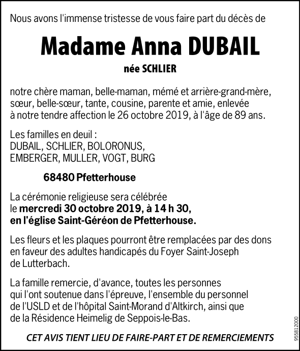 La source : waldighoffen.com C'est tout ce que nous pouvons vous informer sur le cet avis tient lieu de faire part et de remerciements. Merci de visiter le blog Liéu Intéressant 2019.